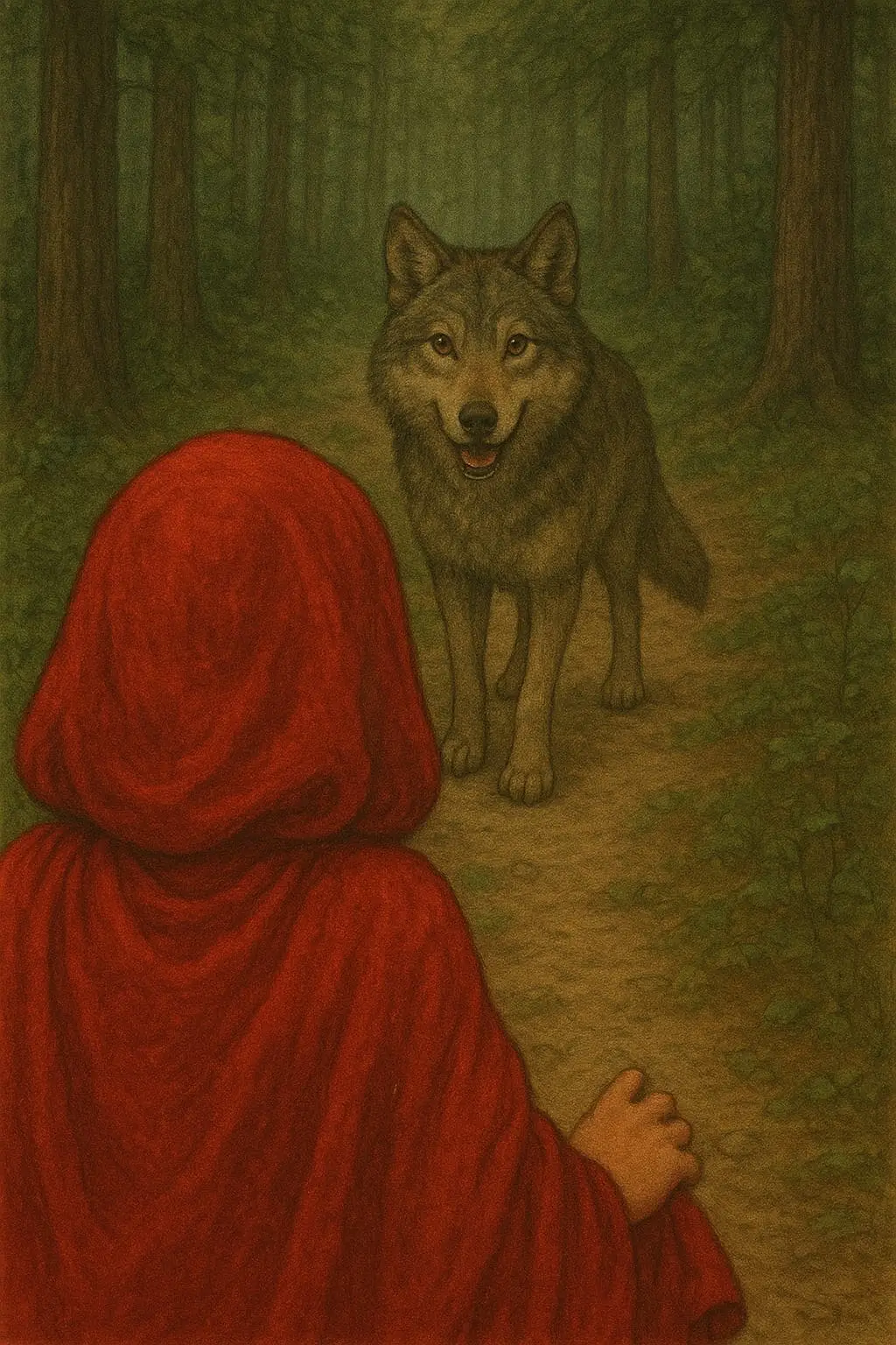 Un día, tu madre te pidió que llevaras a tu abuela enferma un poco de torta y una botella de vino para que se fortaleciera. Te advirtió que debías arreglarte antes de que anocheciera, ir con cuidado por el camino sin desviarte para evitar accidentes, y no husmear en la casa de tu abuela.